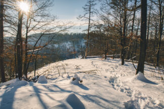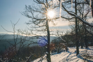 Endlich, nach 20min aufwärts im Schnee und im Schatten, sahen wir wieder die Sonne, die aus der Richtung des Großen Inselsberg her, über den Weinweg schien.