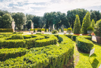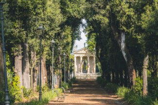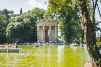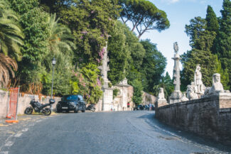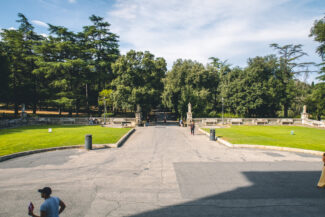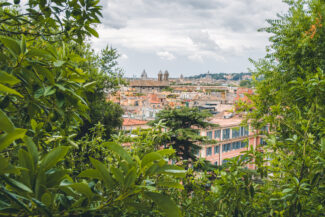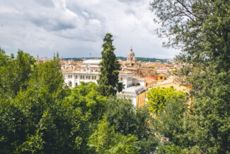 Erster Zielpunkt war die Villa Borghese, die inmitten einer großen Parkanlage lag. Leider durch Bauarbeiten verhangen und an diesen Tag bereits zu restlos ausgebucht, machten wir uns weiter zu Brunnen und angelegten Teichen, immer wieder vorbei an Säulen, Monumenten, Skulpturen und auch Cafes, ehe wir zur Terrazza del Pincio kamen, von der wir einen ersten beeindruckenden Ausblick über einen Teil der Stadt genießen konnten.