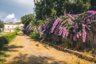 Also weiter am Teich im Park vorbei und in Richtung der Villa. Durchgängig und zum Teil ohrenbetäubend: Das Zirpen von Abertausenden Singzikaden (vermuten wir mal). Diese grellen Töne begleiteten und bis zum Ausgang des Parkes.