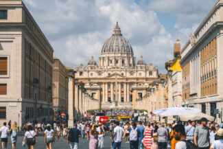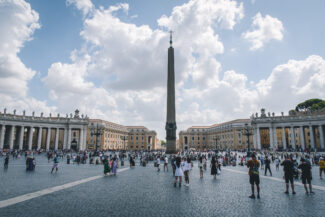 Wir strömten also den Massen hinterher und gelangten auf den riesigen Petersplatz, auf den uns, wieder einmal, eine große Menschenschlange begrüßte. Zwar ist der Eintritt frei, aber ohne Anstehen gehts nicht…es sei denn man investiert richtig. So wurde uns eine Führung mit bevorzugten Einlass angeboten…für 90€ je Person…kurz darauf waren es 70…und darauf gab es 5min noch mal 50% Rabatt… Geld regiert die Welt, auch im so religiösen Vatikan…