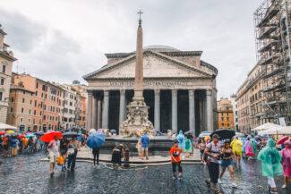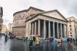 In einer kleinen Regenpause machten wir uns weiter zum nächsten Hotspot des Touristen-Szene: dem Trevi-Brunnen. Immer sich gegenseitig im Auge haben (Hotspot auch der Taschendiebe), erhaschten wir auch ein paar Bilder an den komplett überlaufenden Ort. Genießen ist anders, also ging es schnell beim einsetzenden Regen weiter in Richtung des Pantheon.