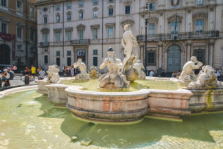 Mittlerweile hatte sich der Regen verabschiedet und wir machten beim Piazza Navona erstmal eine Pause. Wie immer schauten wir bei der Gelegenheit auf Maps und beschlossen weiter zur Engelsburg zu laufen und unser Glück, ohne Onlinebuchung in die Burg zu gelangen, einfach mal zu probieren.