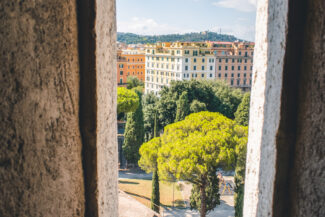 Zuvor liefen wir auf die andere Seite der Ebene und konnten von dort aus wieder einen der so tollen Ausblicke über Rom bis hin zum Kolosseum genießen.